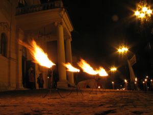 Hry rytiera Rolanda. Veľmi pekné námestie a ešte krajšia akustika pre rachot bubnov a muškiet...