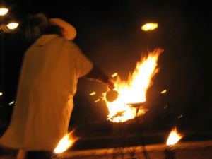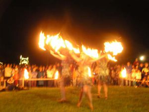 - večerná ohňová fantázia, plná bájnych bytostí, ohňa, šermu a tanca